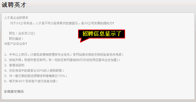 点击“预览”后可以查看招聘信息